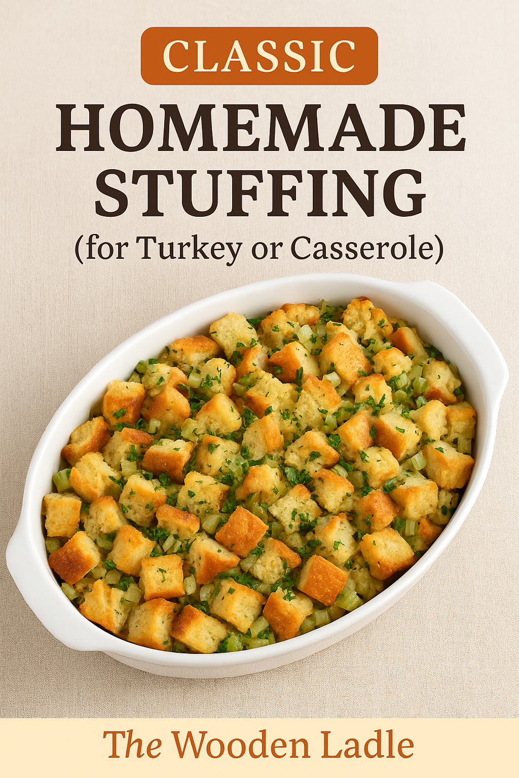 Classic Homemade Stuffing for Turkey or Casserole There’s nothing more comforting than a pan of warm, golden homemade stuffing filling …